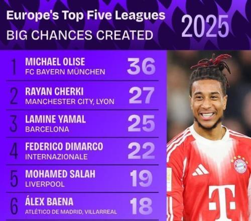 本赛季至今,迪马尔科在五大联赛创造“绝佳机会”次数排行榜上以16次高居榜首,力压马蒂厄·乌多尔(12次)、亚马尔(11次)、奥利塞(11次)等一众攻击好手。这位身价已达5000万欧元的意大利国脚,用一次又一次精准的传中、犀利的直塞和极具想象力的传球,证明了自己不仅是意甲顶尖,更是整个欧洲最具创造力的进攻引擎之一。