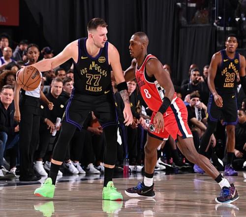 上赛季中期,达拉斯独行侠与湖人完成了一笔重磅交易并且将东契奇送到了湖人。在加盟湖人之后,东契奇在NBA常规赛中总共代表球队出场28次,场均出场时间达到了35.1分钟,场均数据为28.2分8.1篮板7.5助攻1.6抢断0.4盖帽,还有3.7次失误和2.4次犯规,投篮命中率43.8%,三分命中率37.9%,罚球命中率79.1%。到了季后赛,东契奇总共出场5次,场均出场时间达到了41.6分钟,场均数据为30.2分7篮板5.8助攻1抢断0.6盖帽,还有4次失误和3.2次犯规,投篮命中率45.2%,三分命中率34.8%,罚球命中率89.1%。本赛季开季至今,东契奇在前43场比赛中受到伤病的影响总共出场35次,场均出场时间达到了36.4分钟,场均数据为33.4分7.8篮板8.7助攻1.5抢断0.5盖帽,还有4.3次失误和2.7次犯规,投篮命中率46.5%,三分命中率33.3%,罚球命中率78.5%。